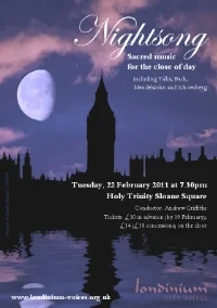 To be continued... Londinium's first public performance was a concert of music by Palestrina and Byrd at St Mary-at-Hill on Wednesday 9th November 2005, conducted by Brian Gordon.
